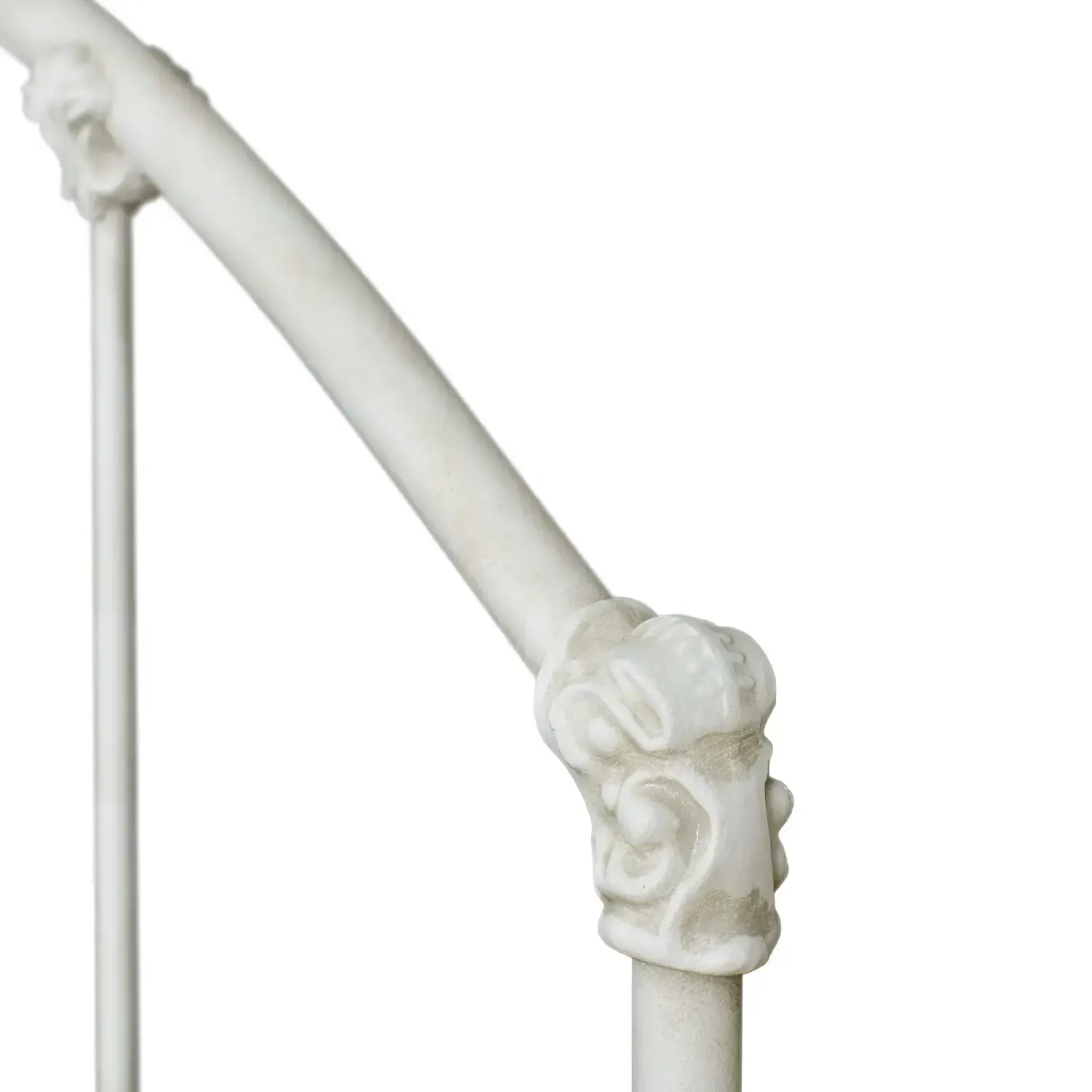 The Coventry iron bed is proper without being prim. With style unique to the classic bed, the headboard and footboard mirror each other. The widely-spaced verticals and a distressed white finish could belong in a French country house, but when coupled with arched frames and sophisticated accents at each joint, Coventry feels right at home in more eclectic surroundings. Standard metal frame includes three metal slats - box spring recommended. This bed can be used with adjustable mattress sets by removing the three center slats. All standard bed frames are finished in matte black. Made in the USA by Wesley Allen, the leading manufacturer and designer of expressive and eclectic iron furniture.